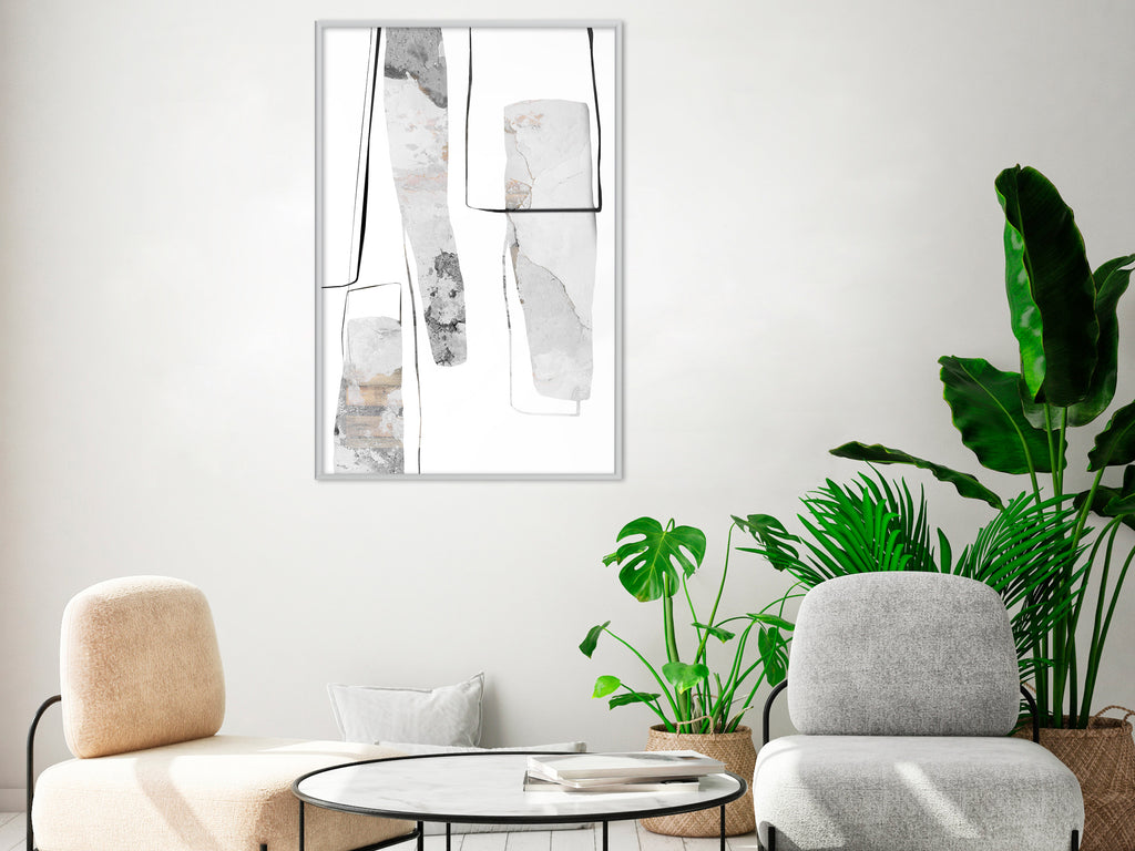 De poster wordt ingelijst in een minimalistische, lichte lijst, die de poster nadruk geeft op de muur. De poster is beveiligd met acrylglas en is aan de achterzijde van de lijst is een ophanghaakje gemonteerd.