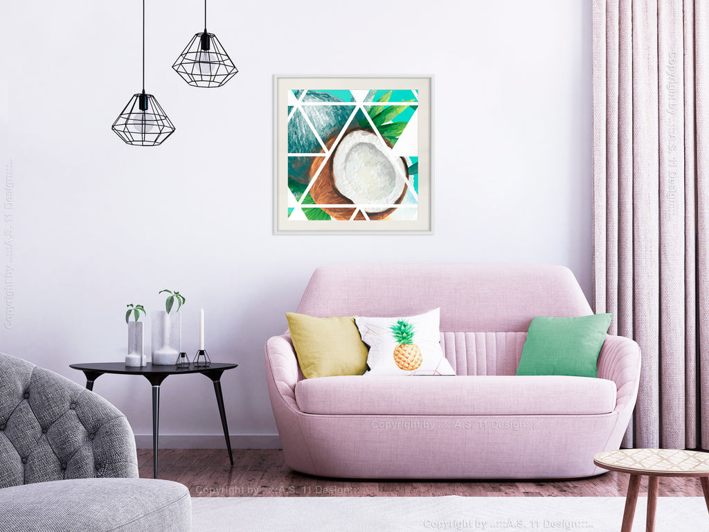 Poster - Tropical Mosaic with Coconut (Square) - wit passepartout
