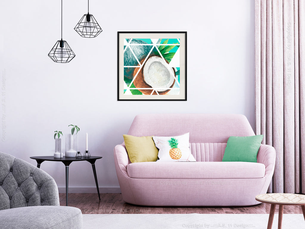 Poster "Poster - Tropical Mosaic with Coconut (Square)" is een product van ons ontwerpteam, dat ervoor zorgt dat onze voorstellen altijd modieus zijn. De poster is beschikbaar in enkele formaten en met verschillende lijsten, zodat je eenvoudig een variant vindt die aan jouw smaak voldoet.