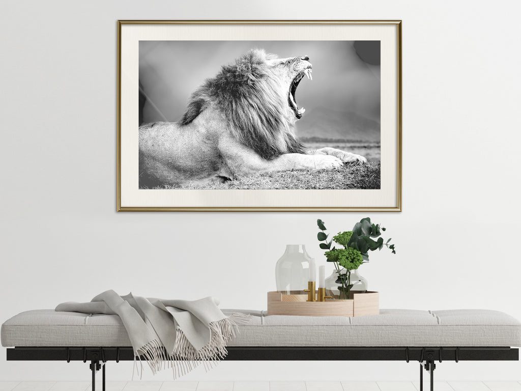 Poster "Poster - Yawning Lion" is een product van ons ontwerpteam, dat ervoor zorgt dat onze voorstellen altijd modieus zijn. De poster is beschikbaar in enkele formaten en met verschillende lijsten, zodat je eenvoudig een variant vindt die aan jouw smaak voldoet.