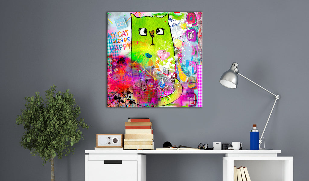 De hoogwaardige canvas print "Schilderij - Crazy Cat" is het resultaat van het werk van een getalenteerd team van ontwerpers - jonge kunstenaars, grafische ontwerpers en fotografen die vol ideeën zitten. De canvas print waarin u geïnteresseerd bent is een combinatie van een print met de hoogste kwaliteit, nauwkeurig handwerk en materiaal van de beste kwaliteit.