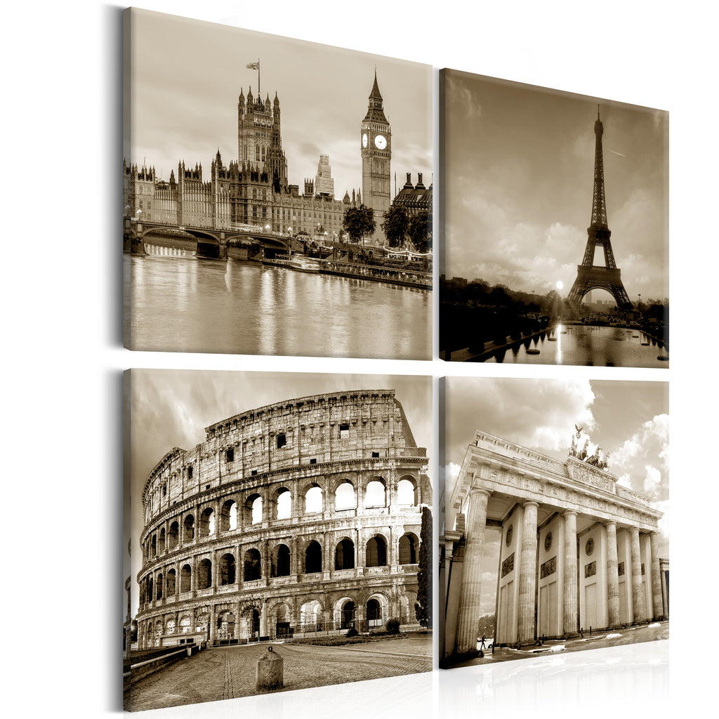 Laat de canvas print "Schilderij - European Capitals" uw woning en de woningen van uw dierbaren veranderen!