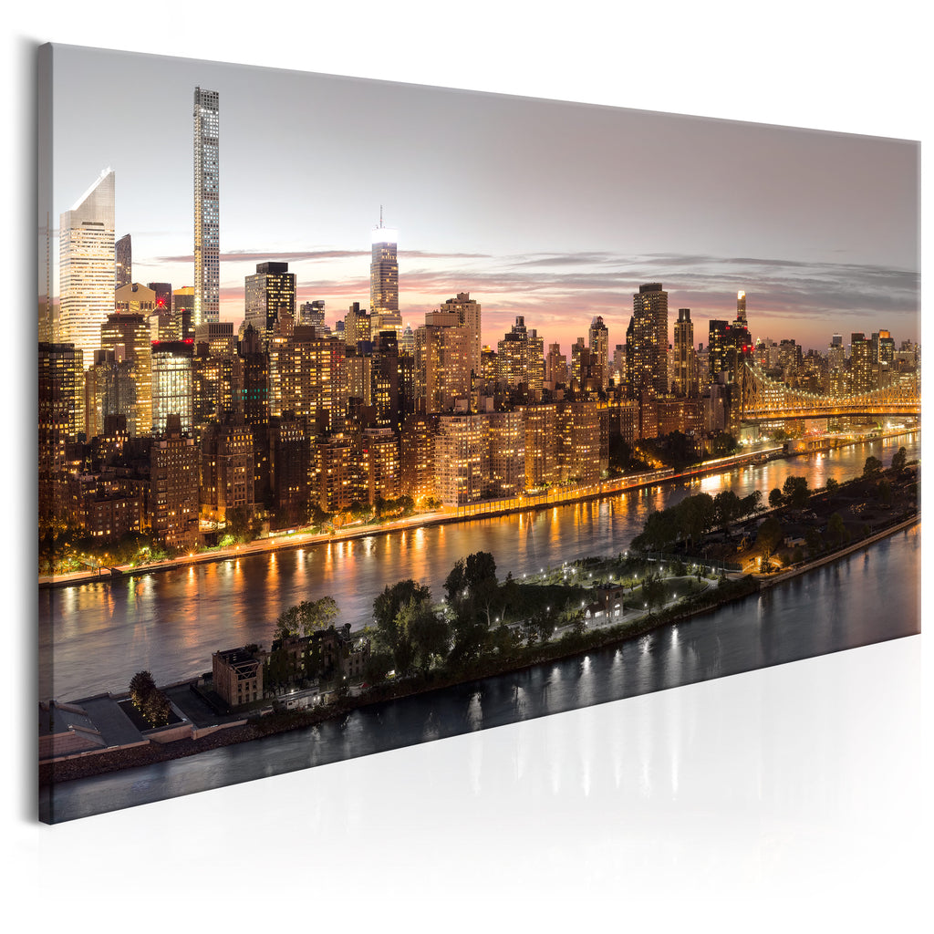 Laat de canvas print "Schilderij - Evening Manhattan" uw woning en de woningen van uw dierbaren veranderen!
