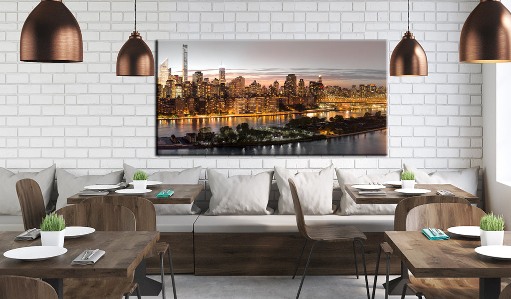 Hoogwaardige materialen Canvas print "Schilderij - Evening Manhattan" wordt geprint op een speciaal vlies-canvas dat kleuren perfect weergeeft. Het canvas wordt gespannen op een licht maar stabiel frame, gemaakt van milieuvriendelijke materialen. Decoratie van topkwaliteit wordt verstrekt door hoogwaardig printen, waardoor de kleuren levendig zijn en de details perfect gereproduceerd worden, ongeacht het formaat van de canvas print.