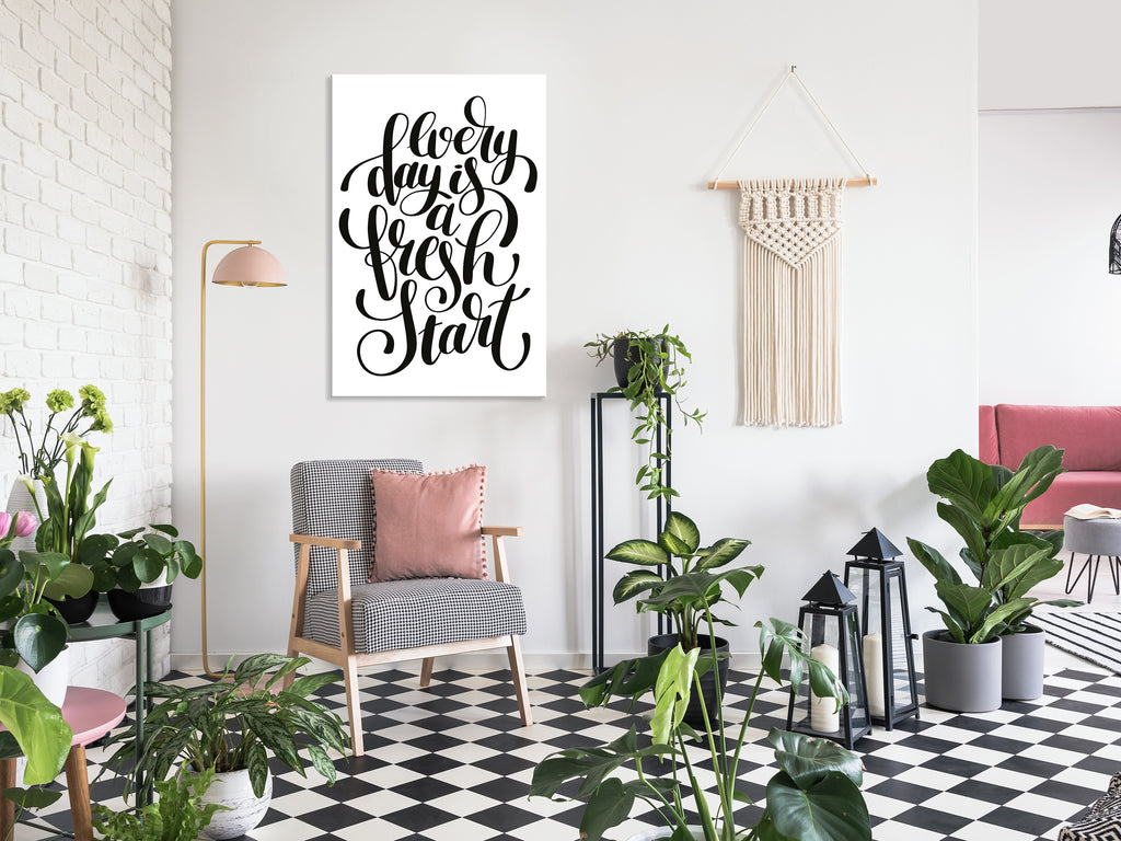 Laat de canvas print "Schilderij - Every Day Is a Fresh Start (1 Part) Vertical" uw woning en de woningen van uw dierbaren veranderen!