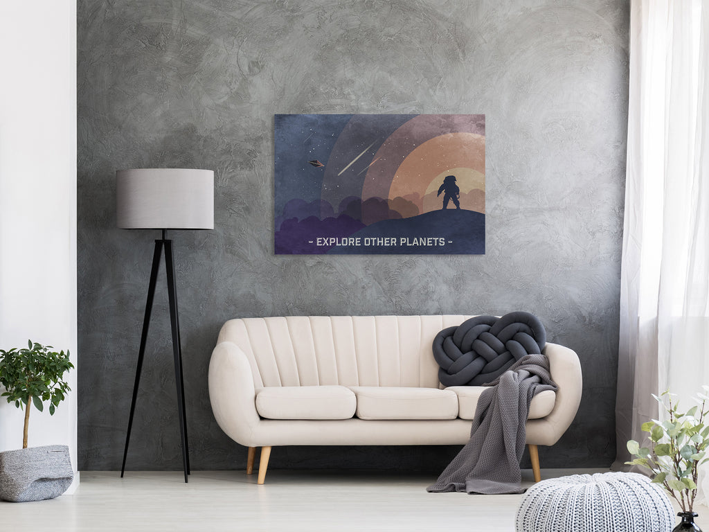 Laat de canvas print "Schilderij - Explore Other Planets (1 Part) Wide" uw woning en de woningen van uw dierbaren veranderen!