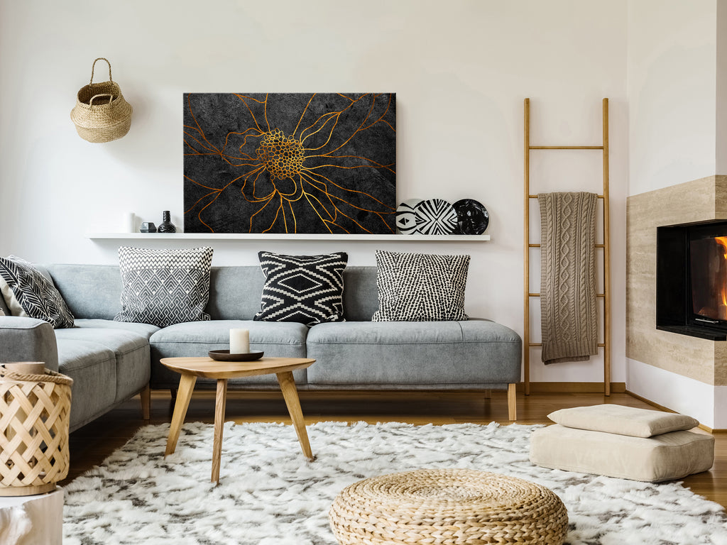 Laat de canvas print "Schilderij - Flower in Gold (1 Part) Wide" uw woning en de woningen van uw dierbaren veranderen!
