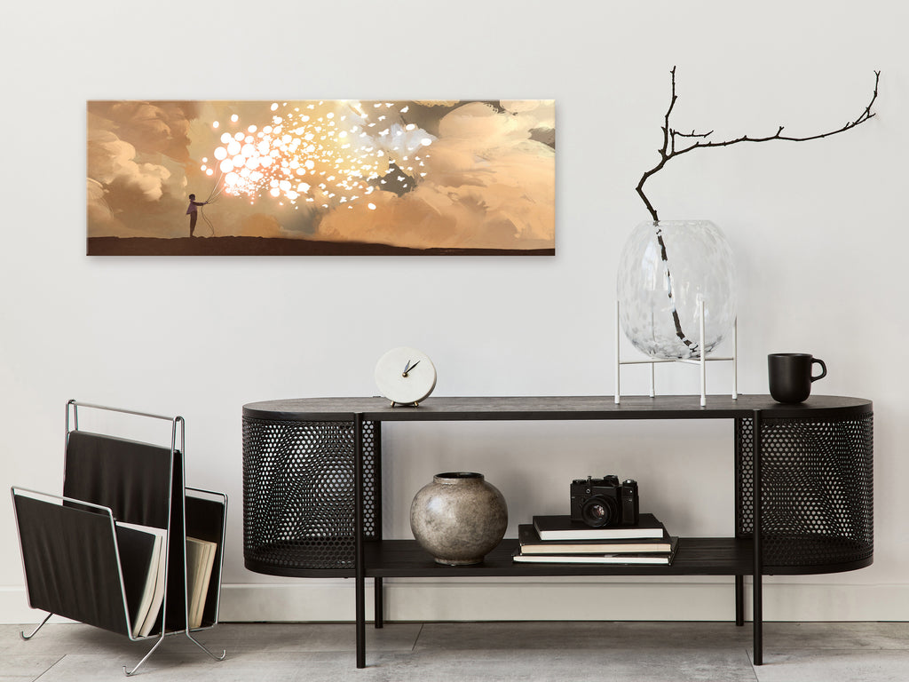Laat de canvas print "Schilderij - Fluttering Balloons (1 Part) Narrow" uw woning en de woningen van uw dierbaren veranderen!