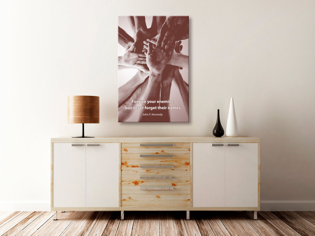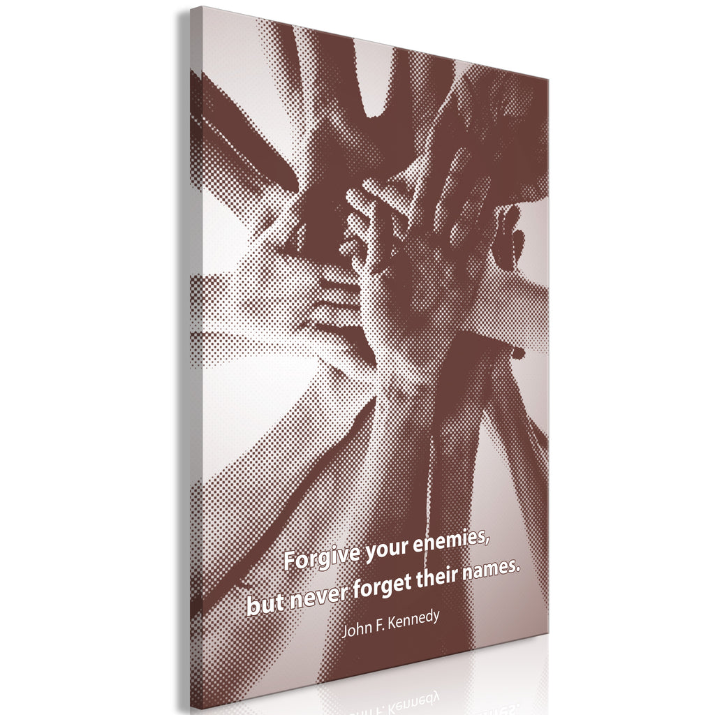 Laat de canvas print "Schilderij - Forgive Your Enemies, But Never Forget Their Names (1 Part) Vertical" uw woning en de woningen van uw dierbaren veranderen!