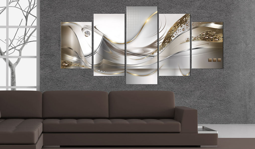 Hoogwaardige materialen Canvas print "Schilderij - Golden Flight " wordt geprint op een speciaal vlies-canvas dat kleuren perfect weergeeft. Het canvas wordt gespannen op een licht maar stabiel frame, gemaakt van milieuvriendelijke materialen. Decoratie van topkwaliteit wordt verstrekt door hoogwaardig printen, waardoor de kleuren levendig zijn en de details perfect gereproduceerd worden, ongeacht het formaat van de canvas print.