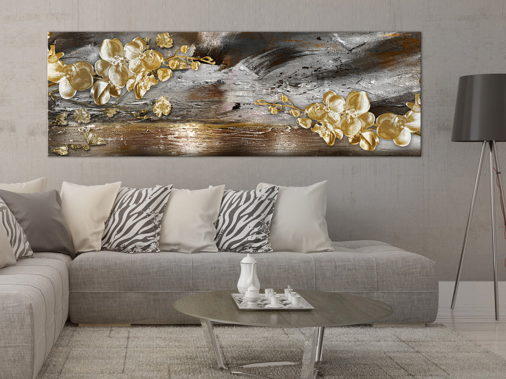 Laat de canvas print "Schilderij - Golden Garden (1 Part) Narrow" uw woning en de woningen van uw dierbaren veranderen!