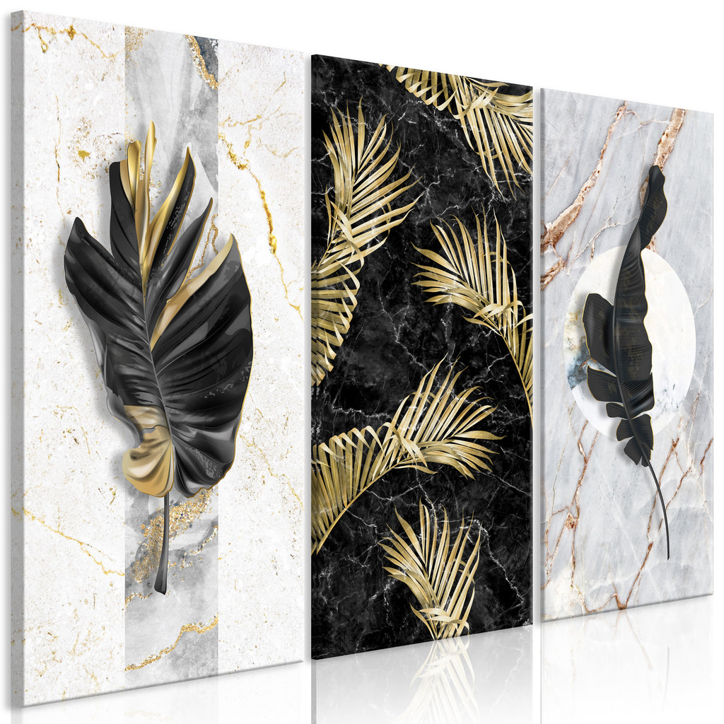Laat de canvas print "Schilderij - Golden Trio (3 Parts)" uw woning en de woningen van uw dierbaren veranderen!