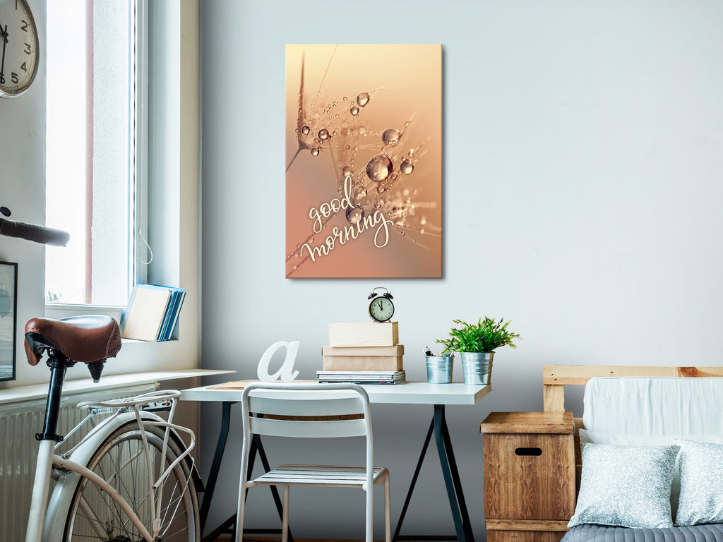 Laat de canvas print "Schilderij - Good Morning (1 Part) Vertical" uw woning en de woningen van uw dierbaren veranderen!