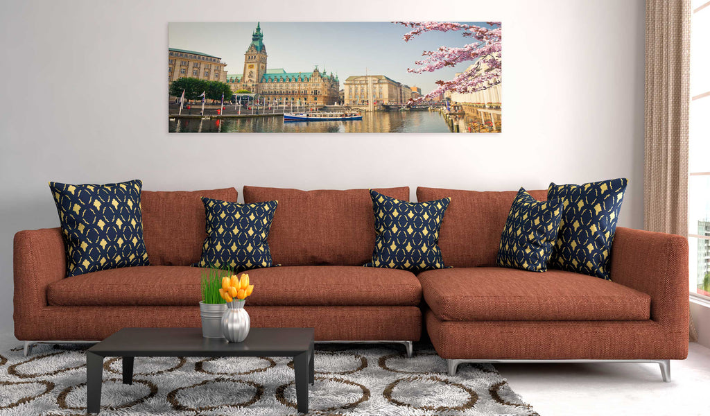 Hoogwaardige materialen Canvas print "Schilderij - Hamburg Town Hall" wordt geprint op een speciaal vlies-canvas dat kleuren perfect weergeeft. Het canvas wordt gespannen op een licht maar stabiel frame, gemaakt van milieuvriendelijke materialen. Decoratie van topkwaliteit wordt verstrekt door hoogwaardig printen, waardoor de kleuren levendig zijn en de details perfect gereproduceerd worden, ongeacht het formaat van de canvas print.