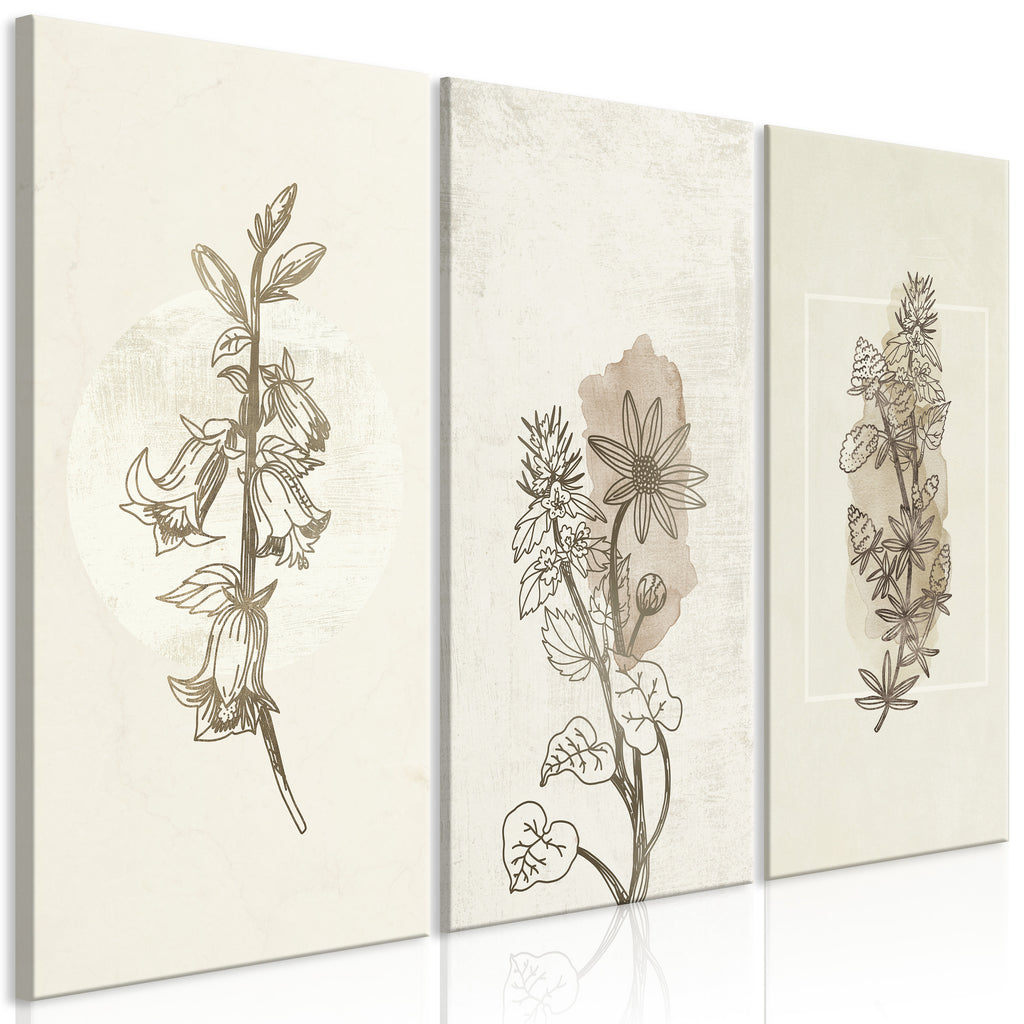 Laat de canvas print "Schilderij - Herbarium (3 Parts)" uw woning en de woningen van uw dierbaren veranderen!