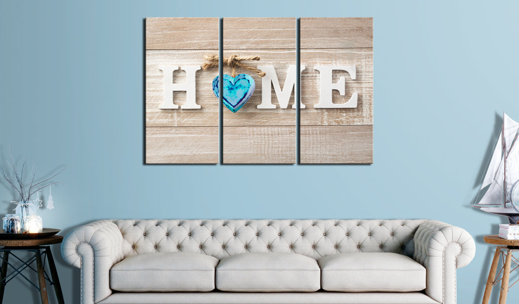 Laat de canvas print "Schilderij - Home: Blue Love" uw woning en de woningen van uw dierbaren veranderen!