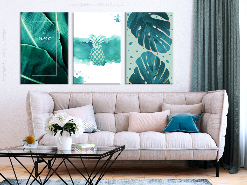 Laat de canvas print "Schilderij - Intense Lagoon (3 Parts)" uw woning en de woningen van uw dierbaren veranderen!