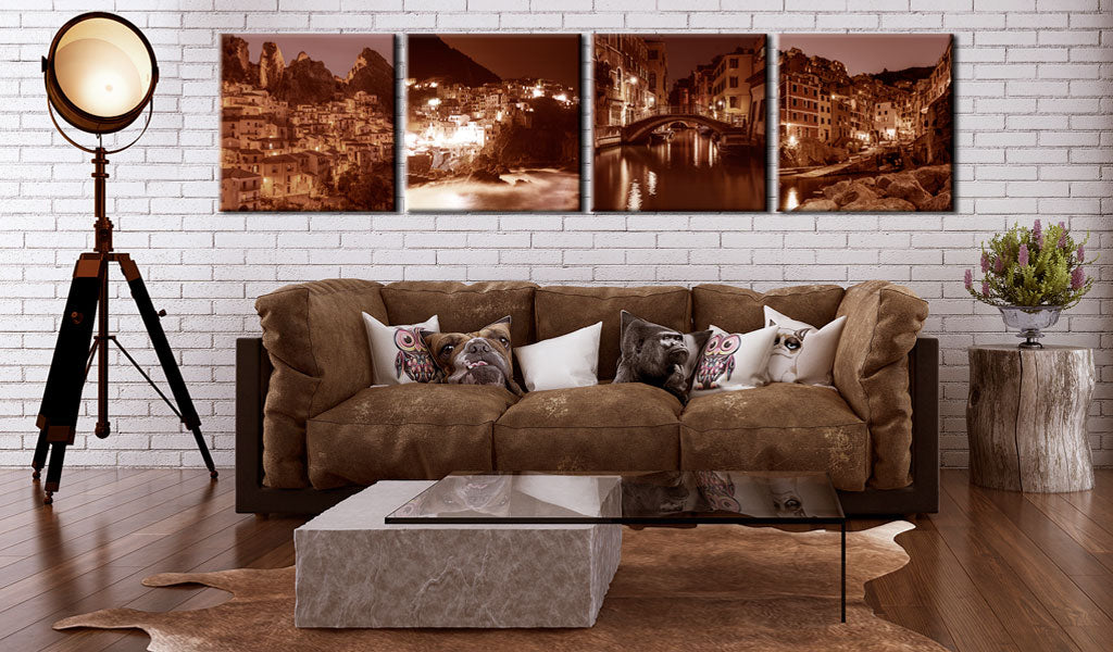 Laat de canvas print "Schilderij - Italian Towns (Sepia)" uw woning en de woningen van uw dierbaren veranderen!