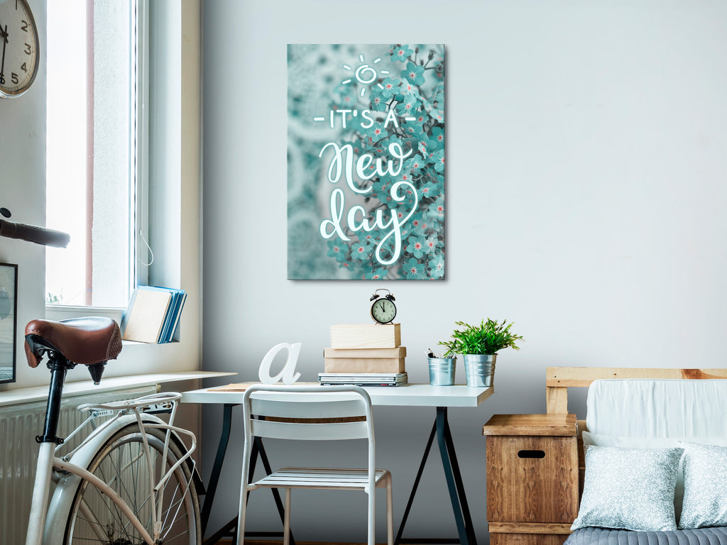 Laat de canvas print "Schilderij - It's a New Day (1 Part) Vertical" uw woning en de woningen van uw dierbaren veranderen!