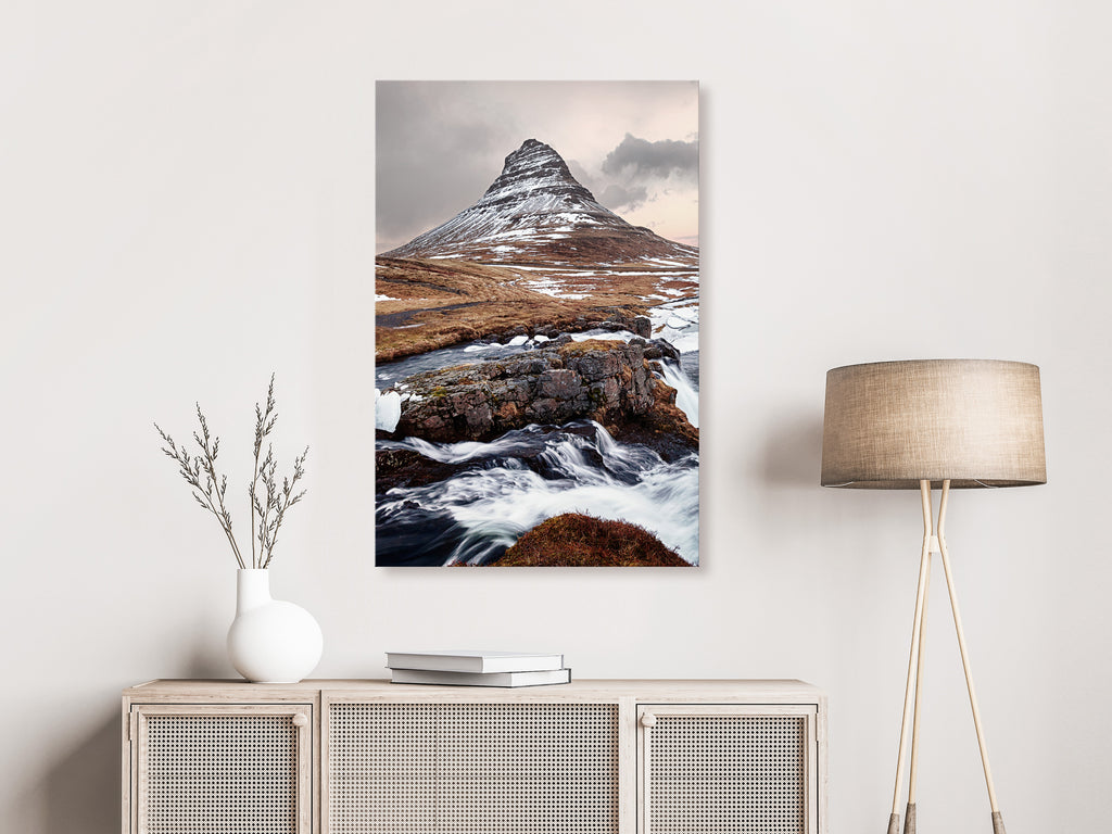 Laat de canvas print "Schilderij - Kirkjufell (1 Part) Vertical" uw woning en de woningen van uw dierbaren veranderen!