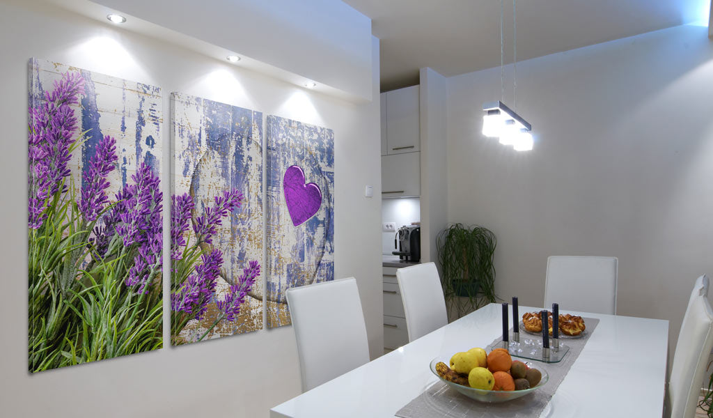 De hoogwaardige canvas print "Schilderij - Lawender love" is het resultaat van het werk van een getalenteerd team van ontwerpers - jonge kunstenaars, grafische ontwerpers en fotografen die vol ideeën zitten. De canvas print waarin u geïnteresseerd bent is een combinatie van een print met de hoogste kwaliteit, nauwkeurig handwerk en materiaal van de beste kwaliteit.