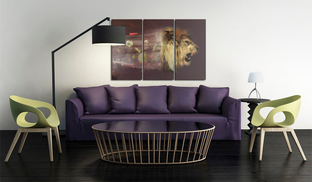 Laat de canvas print "Schilderij - leeuw (abstractie)" uw woning en de woningen van uw dierbaren veranderen!