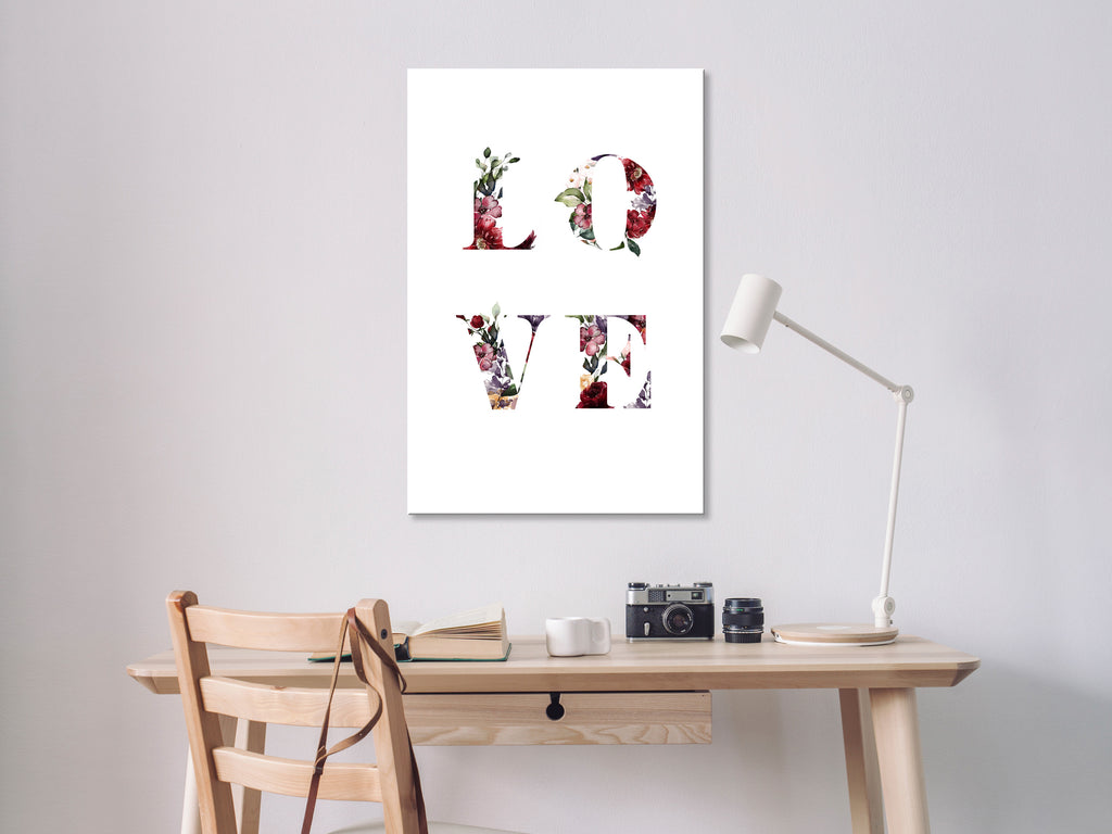 Laat de canvas print "Schilderij - Love in Flowers (1 Part) Vertical" uw woning en de woningen van uw dierbaren veranderen!