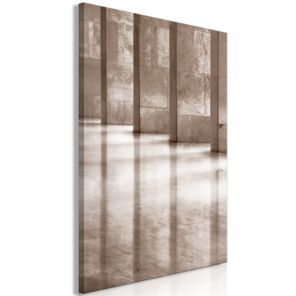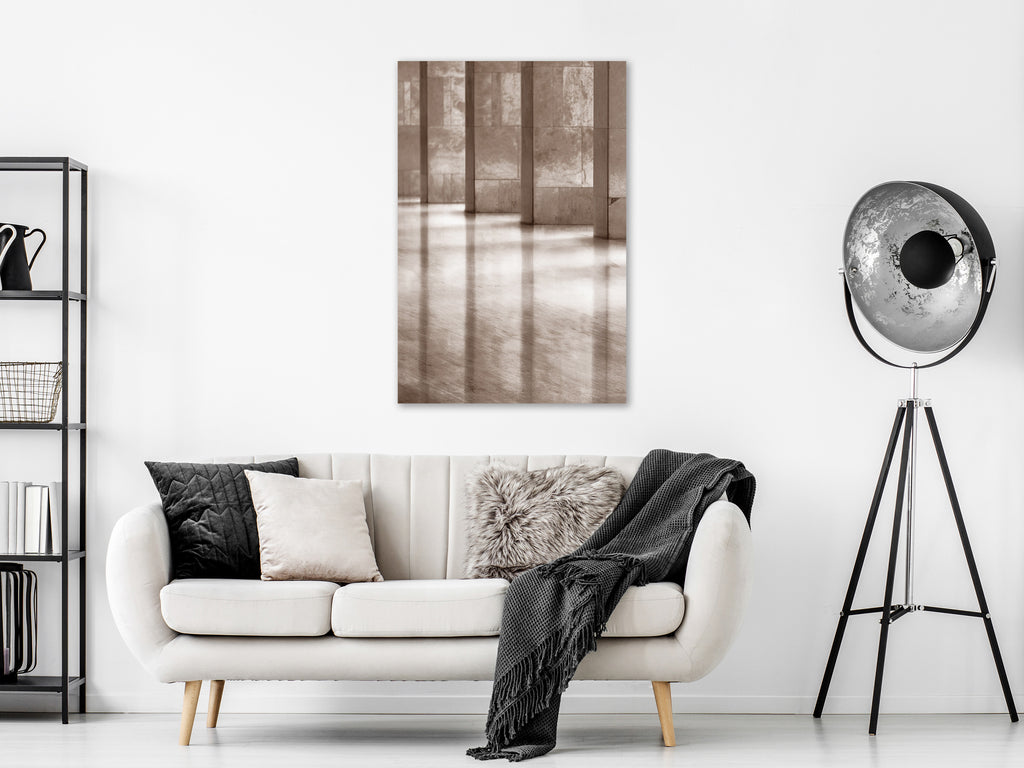 Laat de canvas print "Schilderij - Luminous Corridor (1 Part) Vertical" uw woning en de woningen van uw dierbaren veranderen!
