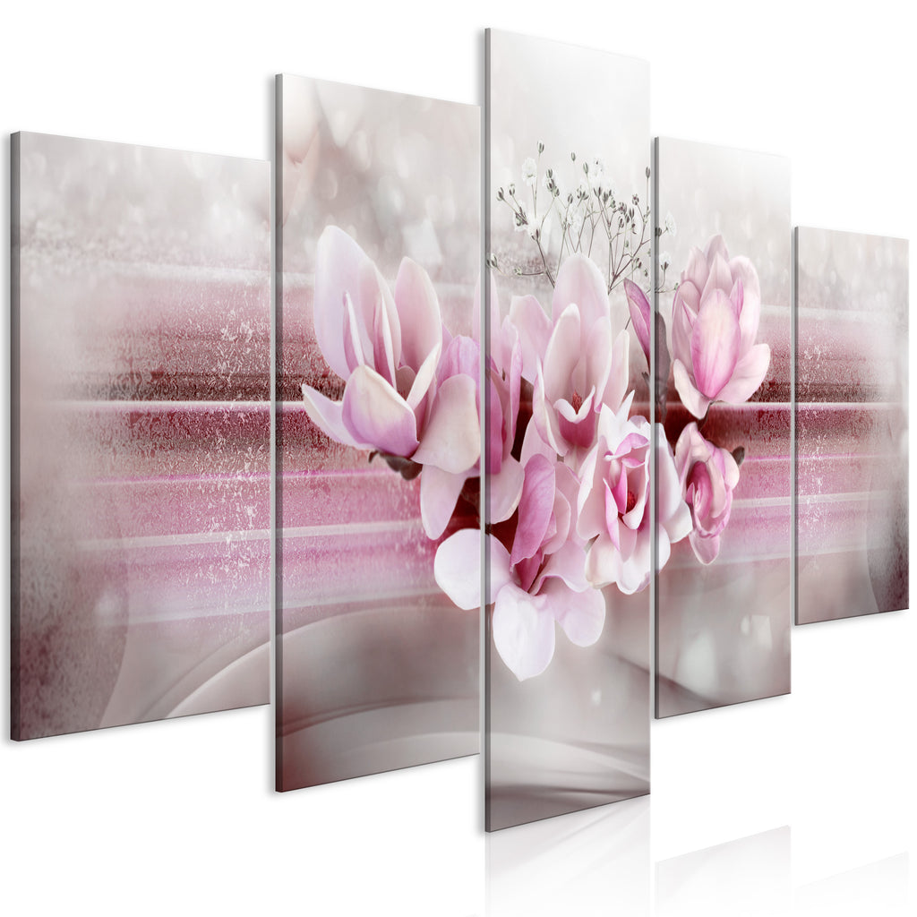 Laat de canvas print "Schilderij - Magnolia Shrub (5 Part) Wide Pink" uw woning en de woningen van uw dierbaren veranderen!