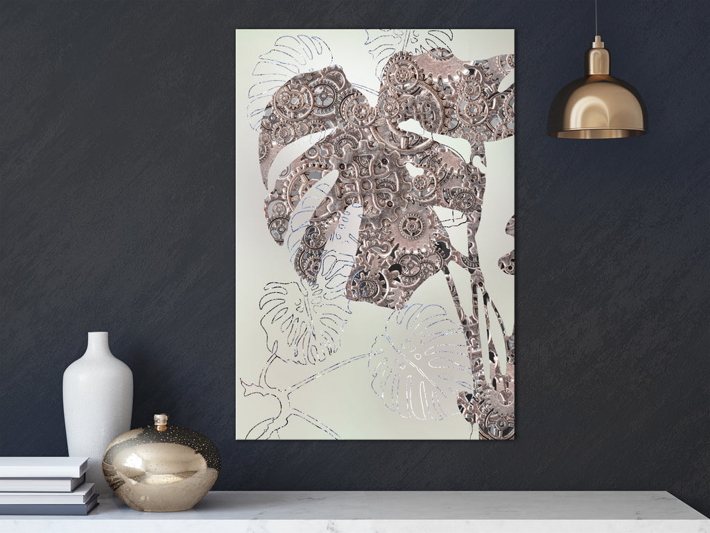 Laat de canvas print "Schilderij - Mechanism of Nature (1 Part) Vertical" uw woning en de woningen van uw dierbaren veranderen!
