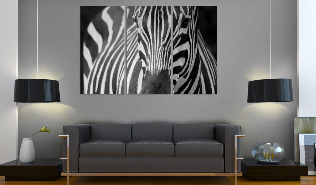 Laat de canvas print "Schilderij - Mevr. Zebra" uw woning en de woningen van uw dierbaren veranderen!