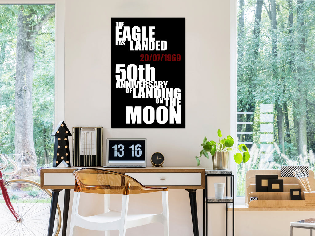 Laat de canvas print "Schilderij - Moon Landing (1 Part) Vertical" uw woning en de woningen van uw dierbaren veranderen!
