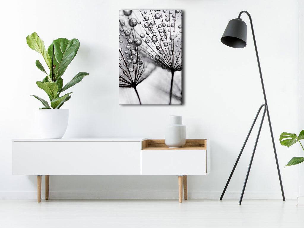 Laat de canvas print "Schilderij - Morning Dew (1 Part) Vertical" uw woning en de woningen van uw dierbaren veranderen!