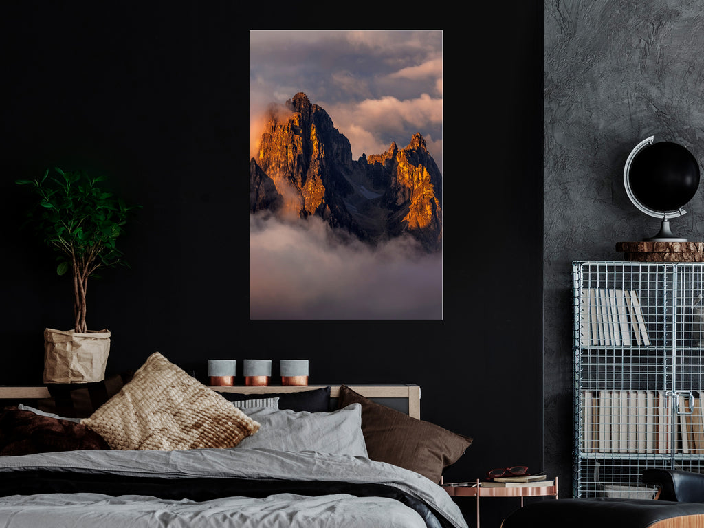 Laat de canvas print "Schilderij - Mountains in the Clouds (1 Part) Vertical" uw woning en de woningen van uw dierbaren veranderen!