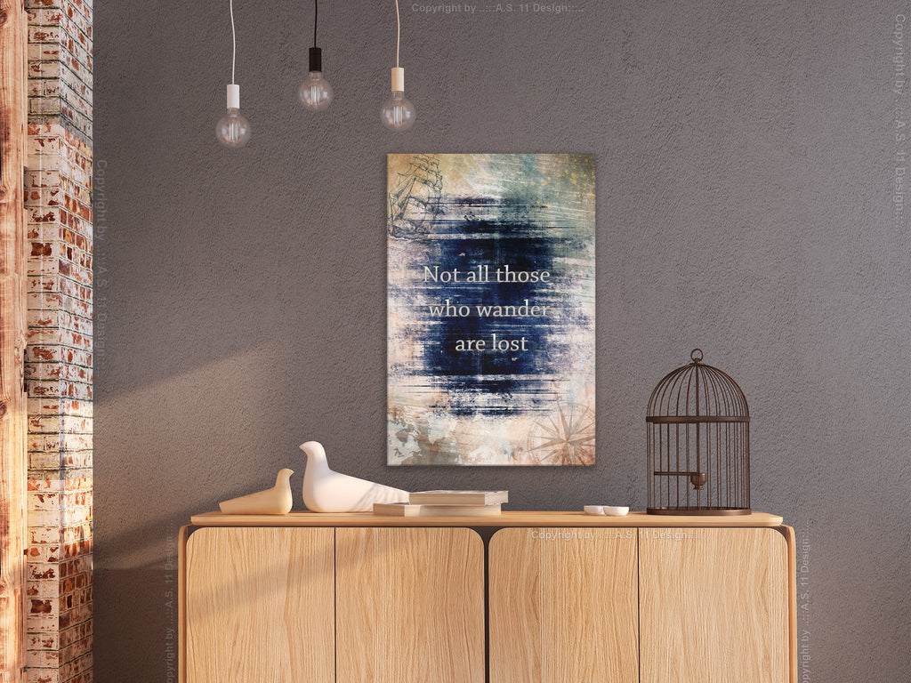 Laat de canvas print "Schilderij - Not All Those Who Wander Are Lost (1 Part) Vertical" uw woning en de woningen van uw dierbaren veranderen!
