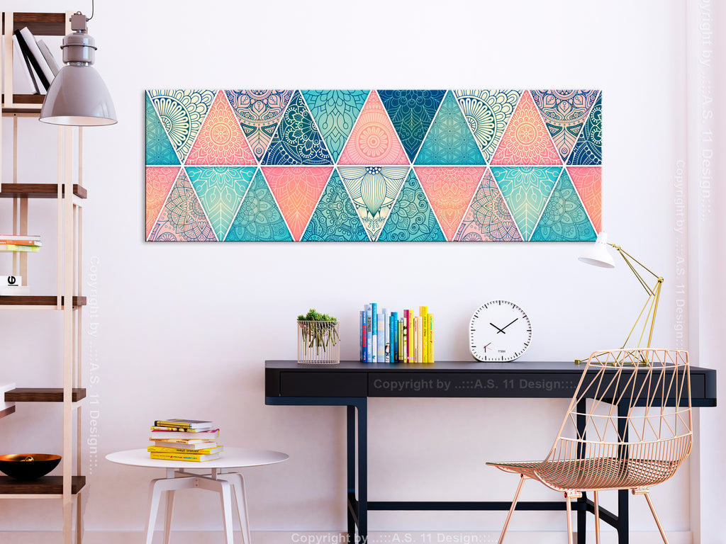 Laat de canvas print "Schilderij - Oriental Triangles (1 Part) Narrow" uw woning en de woningen van uw dierbaren veranderen!