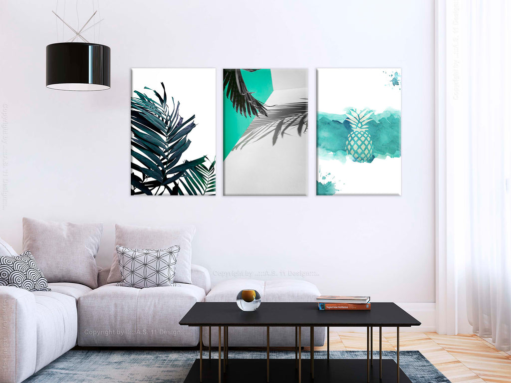 Laat de canvas print "Schilderij - Palm Paradise (3 Parts)" uw woning en de woningen van uw dierbaren veranderen!