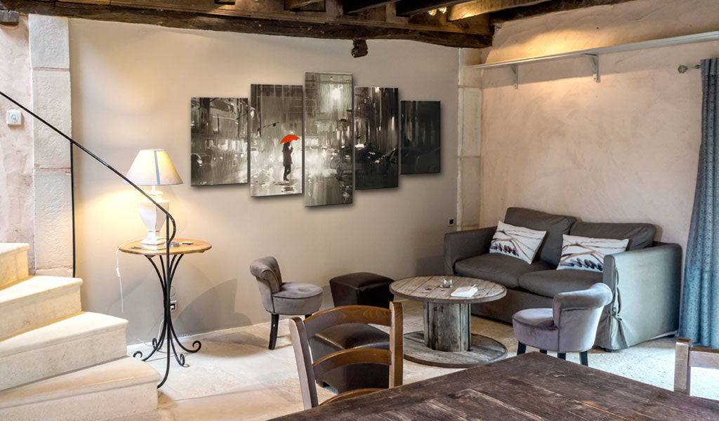 Laat de canvas print "Schilderij - Rain City" uw woning en de woningen van uw dierbaren veranderen!