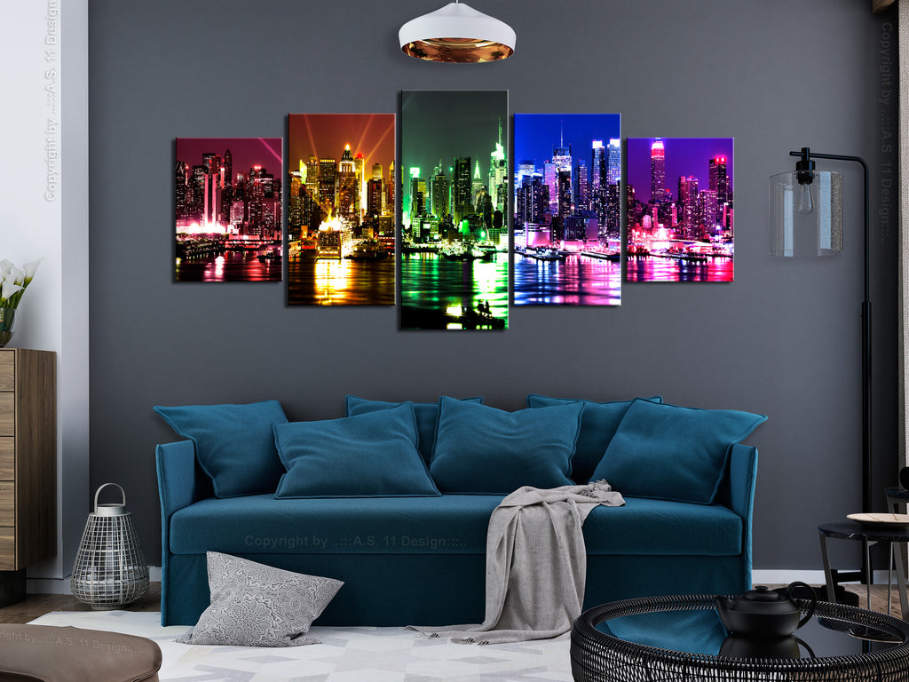 Laat de canvas print "Schilderij - Rainbow New York (5 Parts) Wide" uw woning en de woningen van uw dierbaren veranderen!
