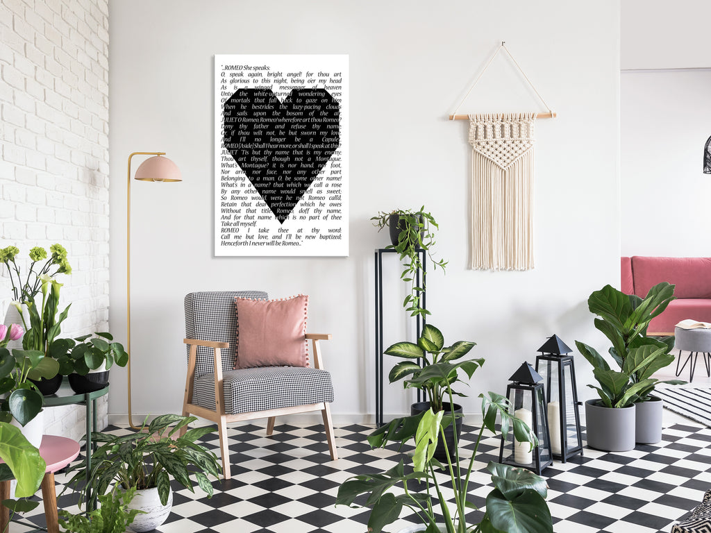 Laat de canvas print "Schilderij - Romeo and Juliet (1 Part) Vertical" uw woning en de woningen van uw dierbaren veranderen!