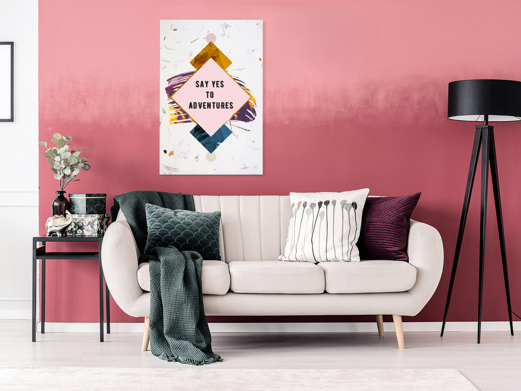 Laat de canvas print "Schilderij - Say Yes to Adventures (1 Part) Vertical" uw woning en de woningen van uw dierbaren veranderen!