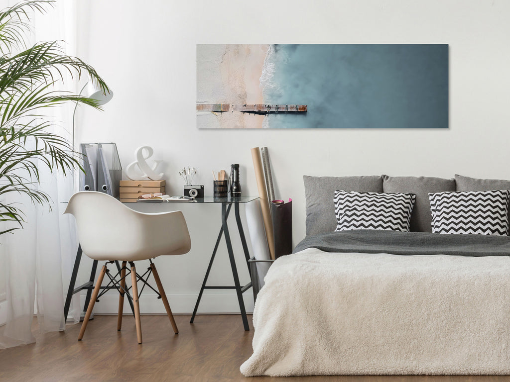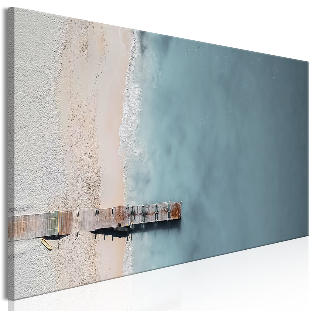 Laat de canvas print "Schilderij - Sea and Wooden Bridge (1 Part) Narrow Grey" uw woning en de woningen van uw dierbaren veranderen!