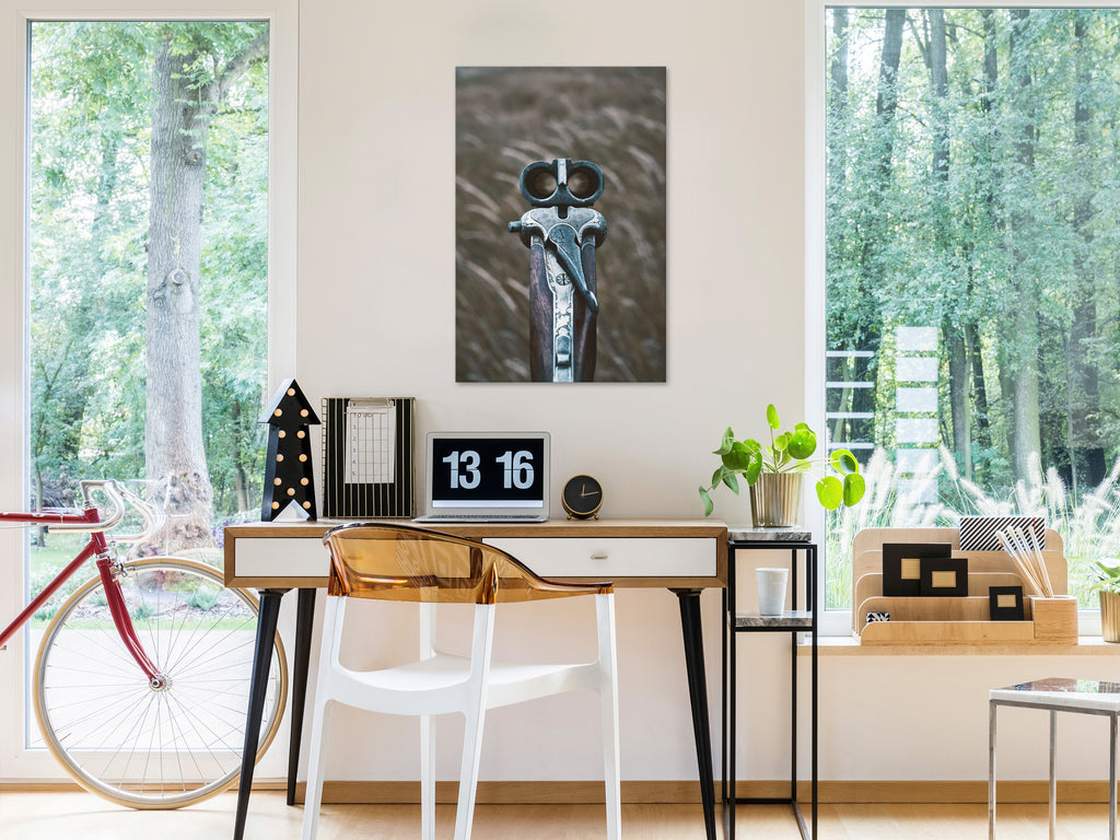 Laat de canvas print "Schilderij - Shotgun (1 Part) Vertical" uw woning en de woningen van uw dierbaren veranderen!
