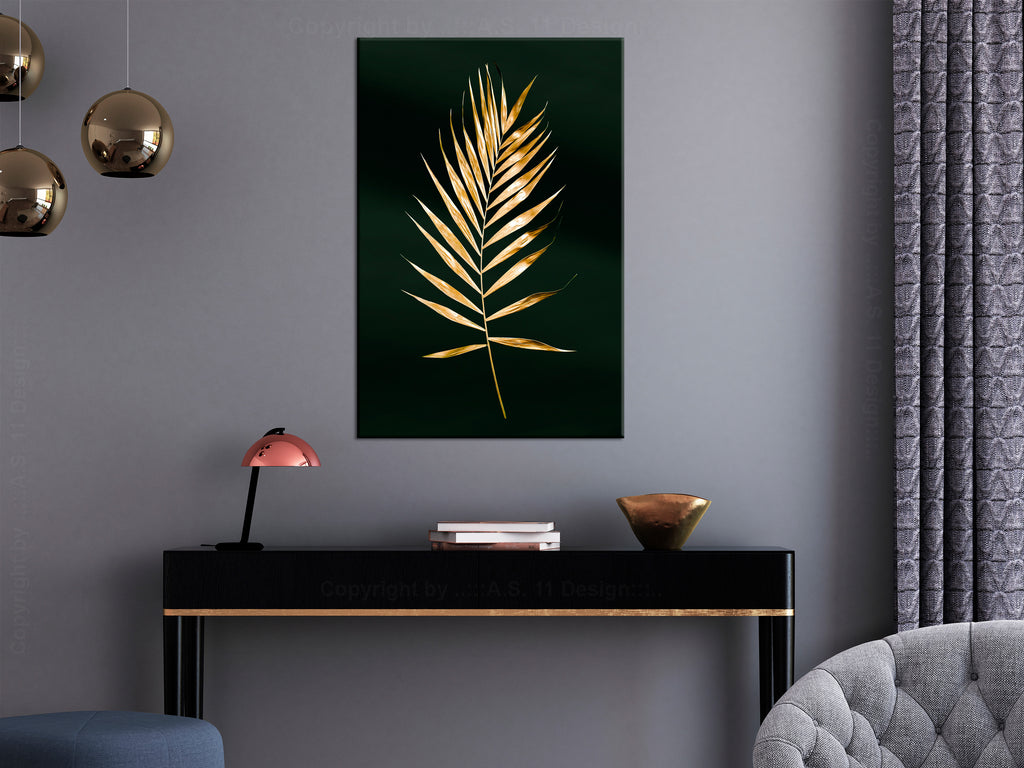 Laat de canvas print "Schilderij - Sophisticated Leaf (1 Part) Vertical" uw woning en de woningen van uw dierbaren veranderen!