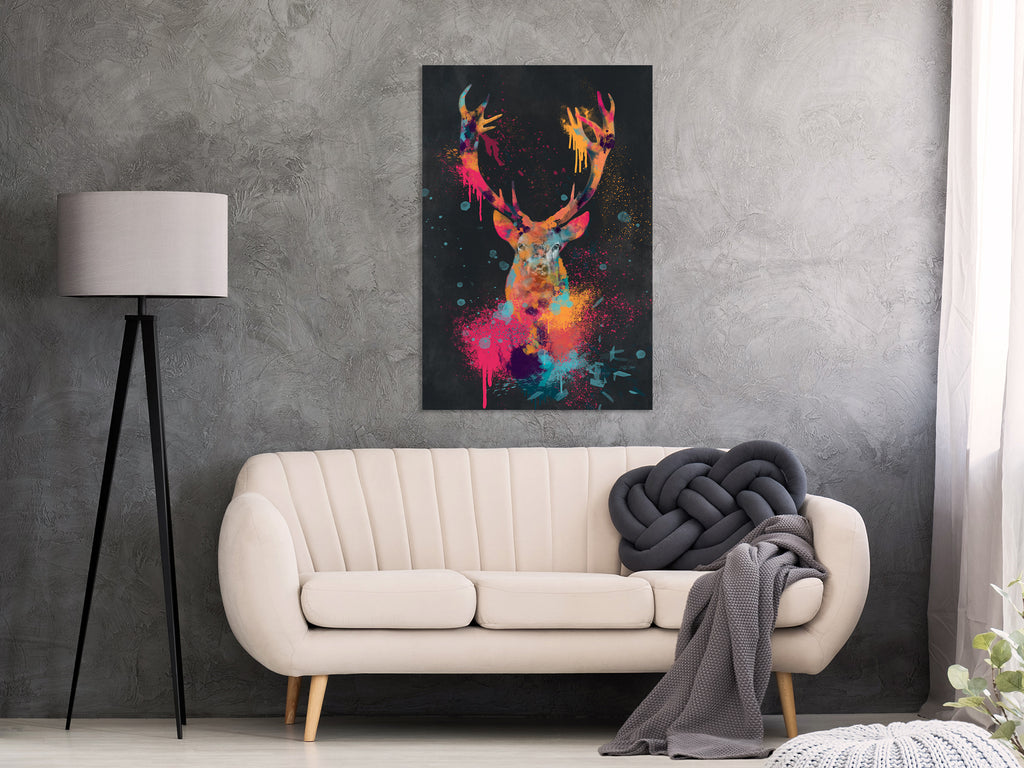 Laat de canvas print "Schilderij - Spectacular Deer (1 Part) Vertical" uw woning en de woningen van uw dierbaren veranderen!