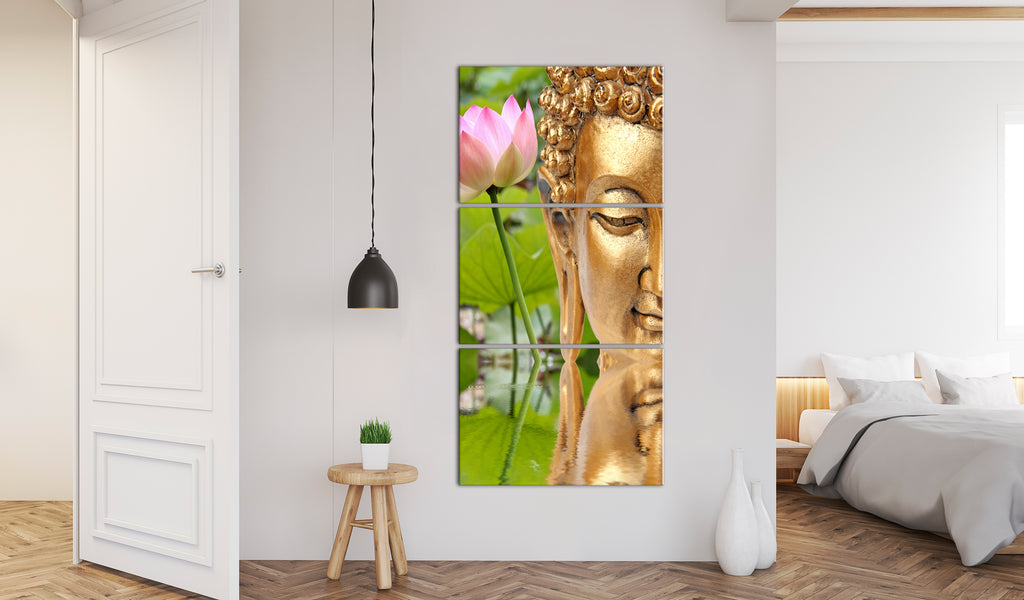 Laat de canvas print "Schilderij - Statue with a Flower" uw woning en de woningen van uw dierbaren veranderen!