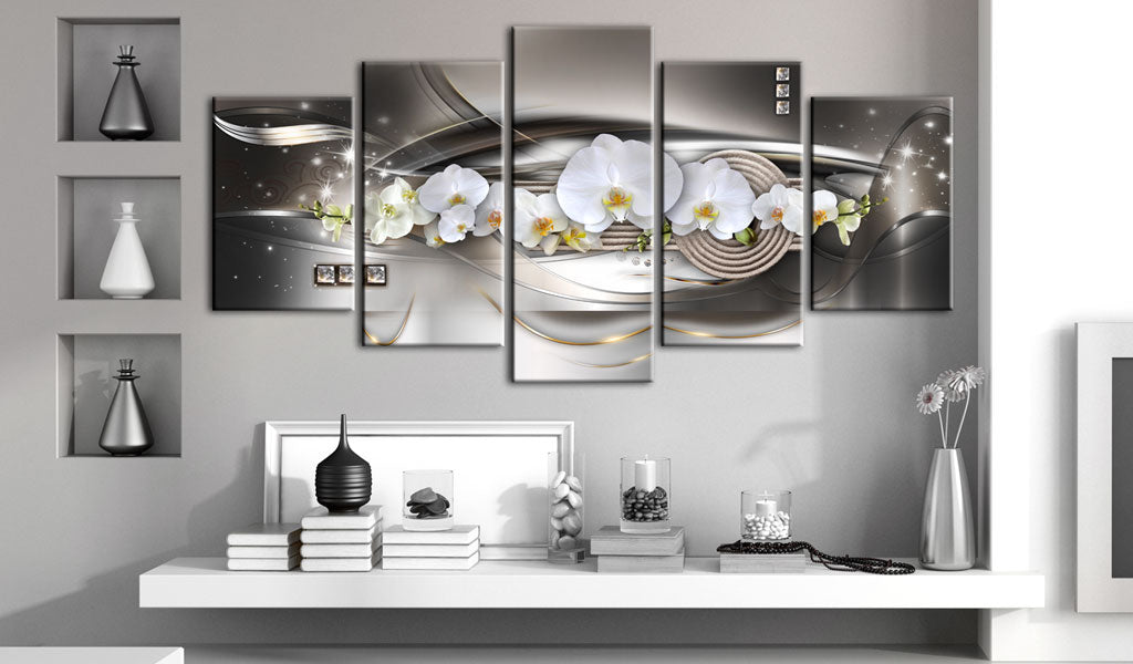 Laat de canvas print "Schilderij - Steel orchids" uw woning en de woningen van uw dierbaren veranderen!