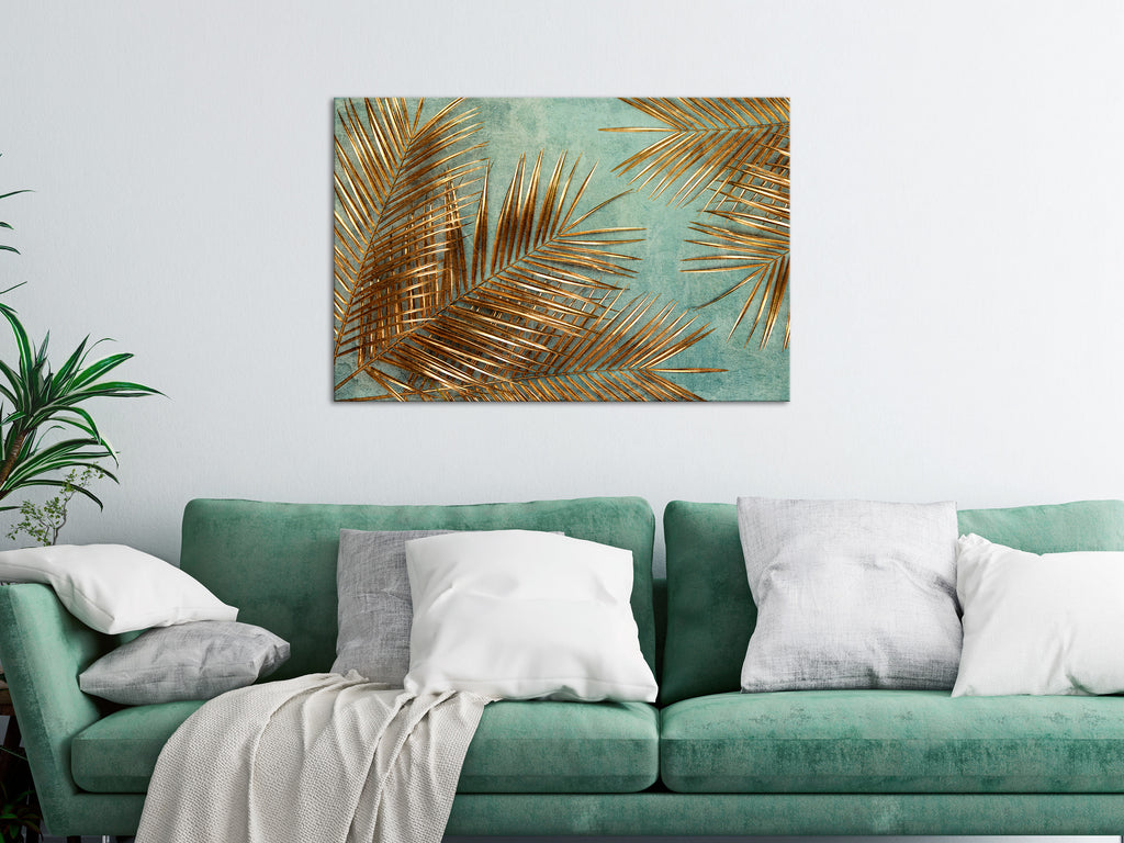 Laat de canvas print "Schilderij - Sunny Palm Trees (1 Part) Wide" uw woning en de woningen van uw dierbaren veranderen!