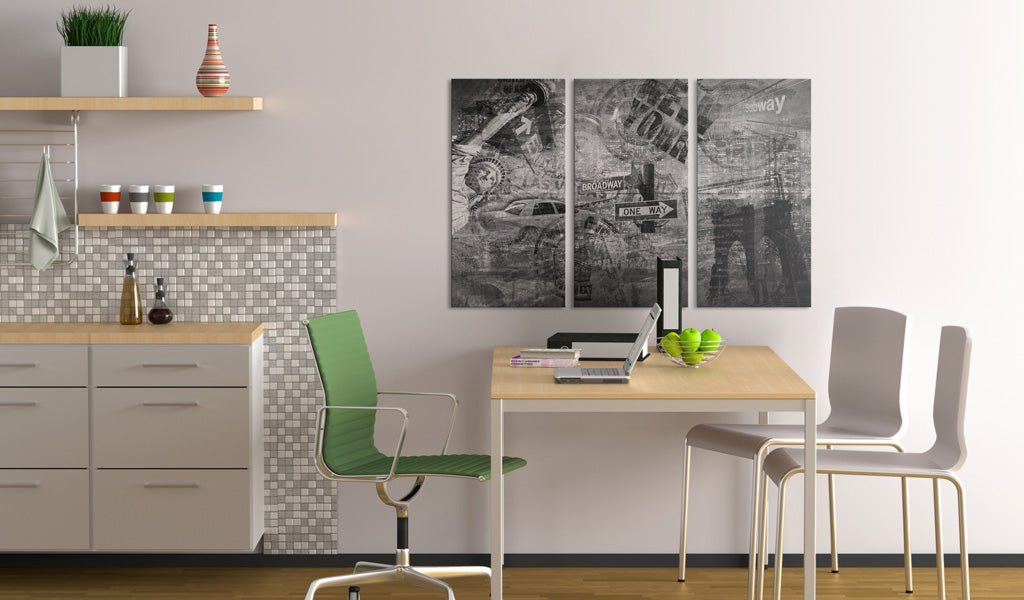 Laat de canvas print "Schilderij - Symbolen van NYC" uw woning en de woningen van uw dierbaren veranderen!