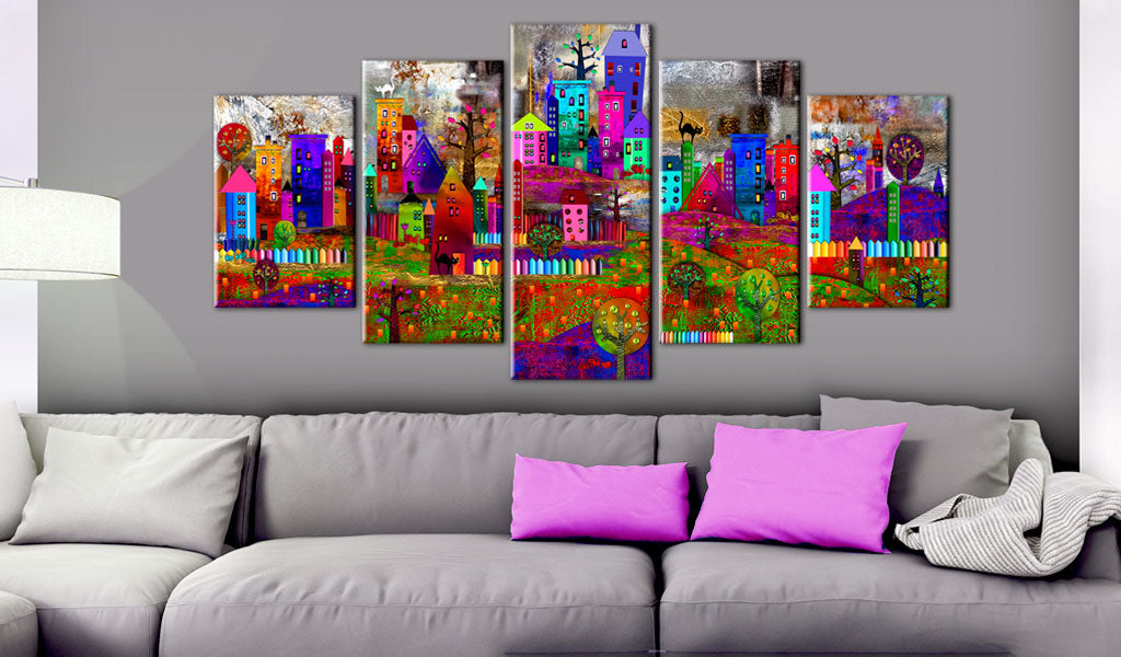 Laat de canvas print "Schilderij - The City of Expression" uw woning en de woningen van uw dierbaren veranderen!